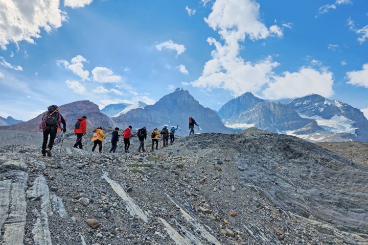 From the Rockaboo Trailer staging area at the Columbia Icefield Discovery Centre’s lower parking lot, your journey begins with an informative briefing, setting you up for a half-day filled with scientific exploration and awe-inspiring vistas. Equipped with state-of-the-art gear including mountain boots and crampons, tailored to ensure safety and comfort, you’ll traverse the rugged terrain with confidence.